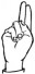 На ћирилици написано СЕРГЕЈ ЧОКОРИЛО састоји се из 14 слова [?]. Исписано ћириличном једноручном азбуком за глувонеме: